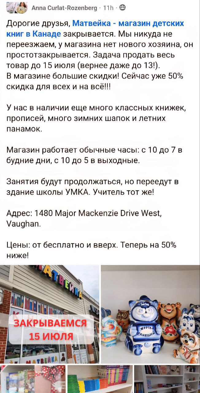 [Магазин "Матвейка"](https://maps.app.goo.gl/M9kVLtQQYf4yYQ9h9?g_st=ac) закрывается. Скидки 50%. Только что вернулись от туда. Спустили __немного__ честно нажитых, но некоторые книги просто не могли н...